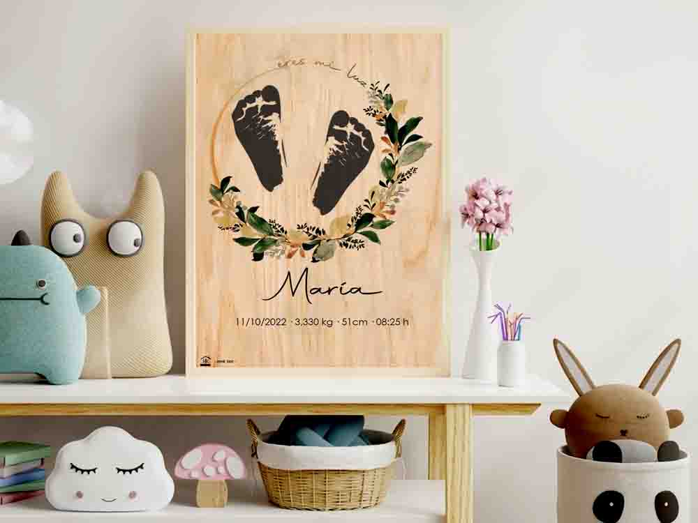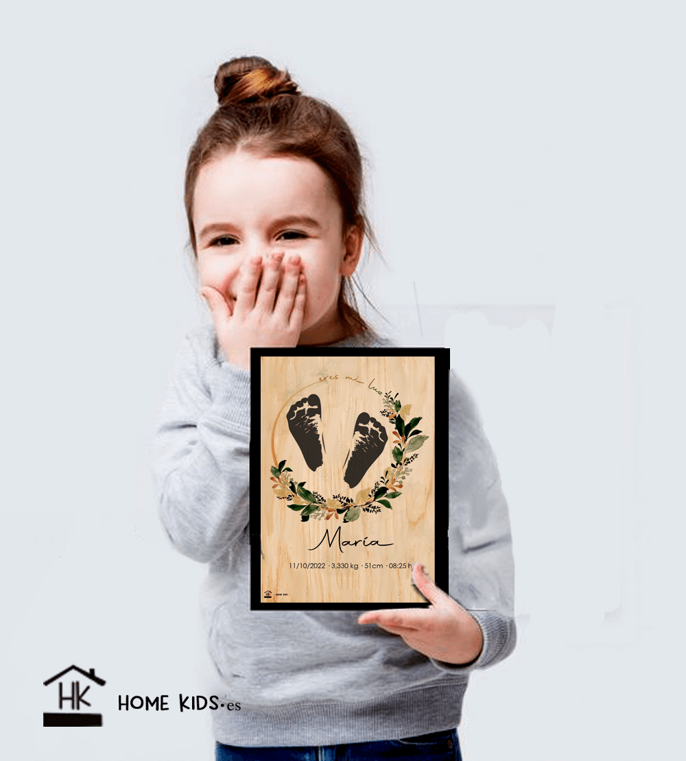 Elige lámina virtual-12,9€ o en madera Lámina 14,9€. Tus huellas infinity con texto personalizable. Podrás personalizar la frase con lo que tu quieras  y ten un recuerdo perpetuo de esos piececitos que tan rápido dan sus pasos. Un regalo bonito, original y vistoso para recordarte lo importante que es el bebé en tu vida. No incluye marco de fotos.